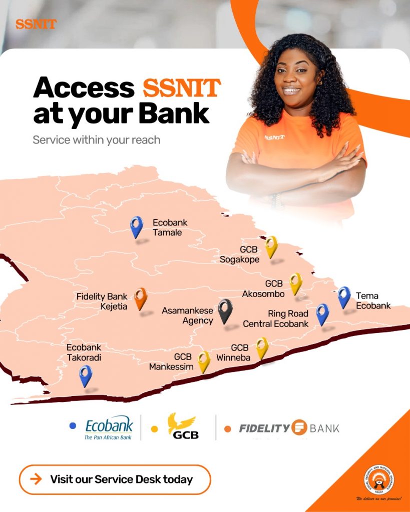 If you are visiting your bank in these locations, you can also access SSNIT services conveniently: